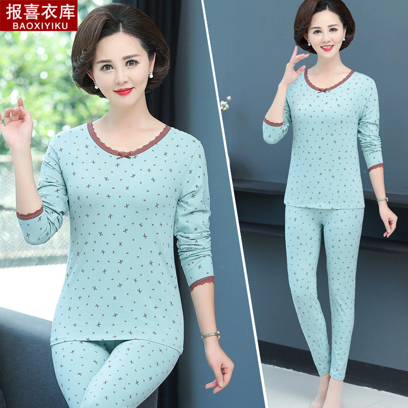 Middle-aged mother sexy tight-fitting women's clothing middle-aged and elderly spring and autumn underwear suit spring long-sleeved two-piece set autumn clothes and long johns