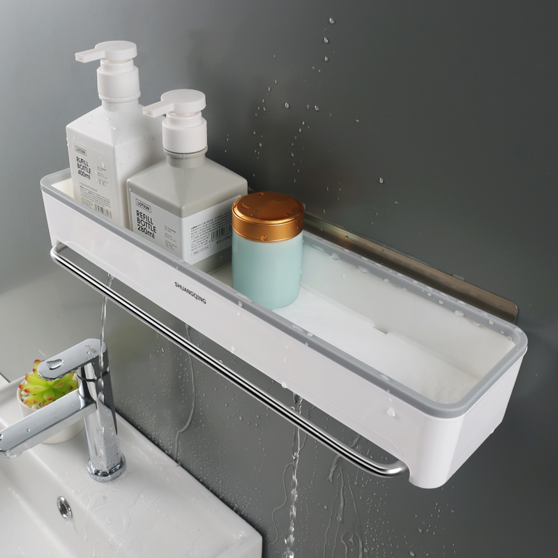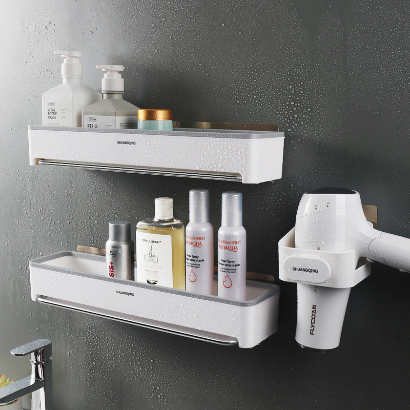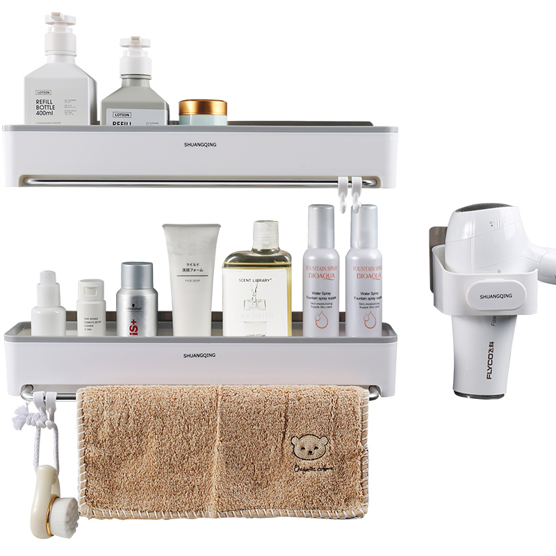 Powder room hair dryer rack towel rack wall-mounted punch-free bathroom vanity storage shelf set