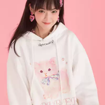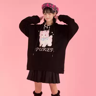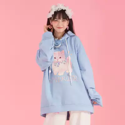 HTCU cartoon pearl cat sweater national tide brand couple hip-hop ins hooded hoodie warm girl casual cute style