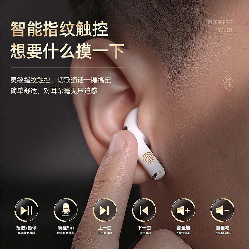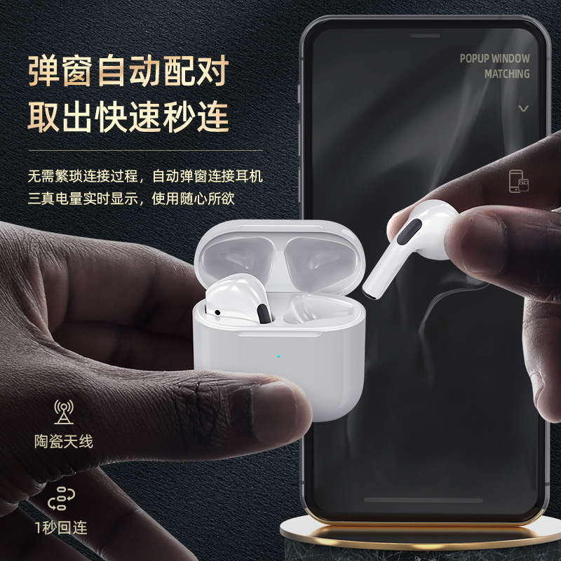 4 Generation 2021 New Bluetooth Headset True Wireless High Sound Quality Semi-in-Ear Binaural Sports Huaqiang North Applicable to Apple Huawei vivo Xiaomi oppo Men's and Women's Super Long Endurance