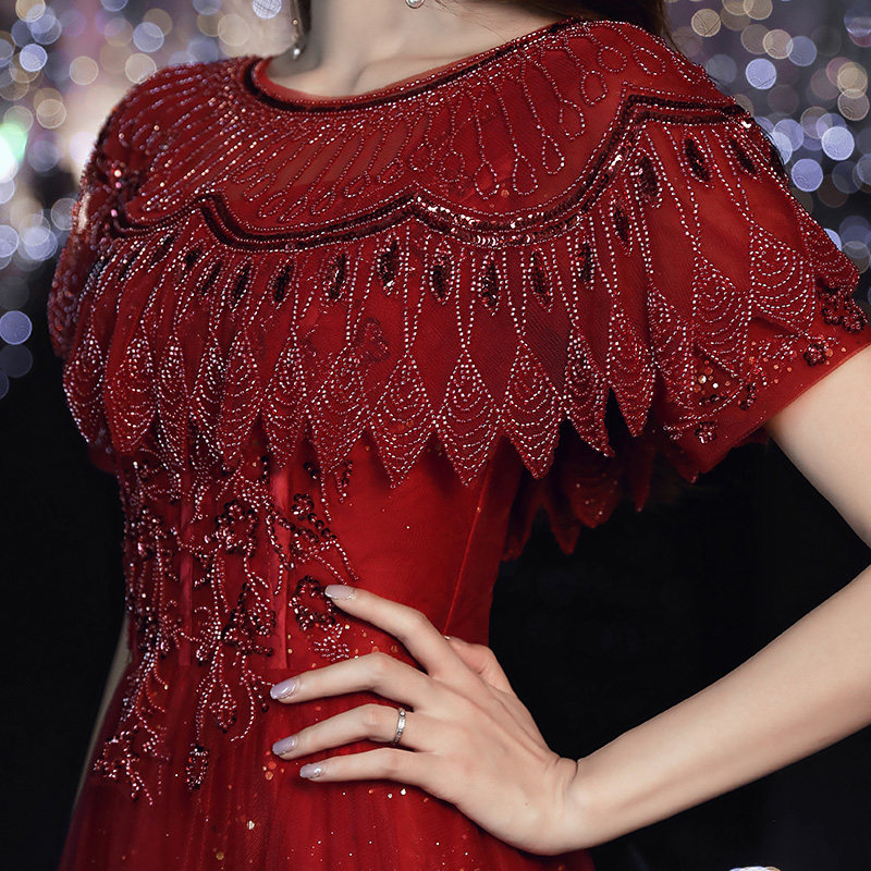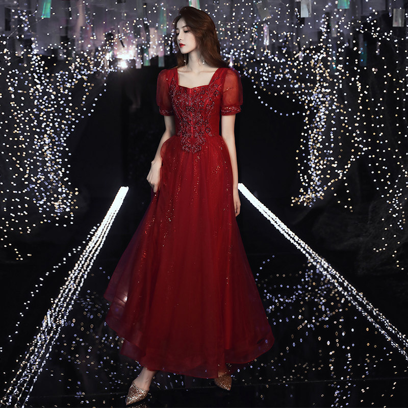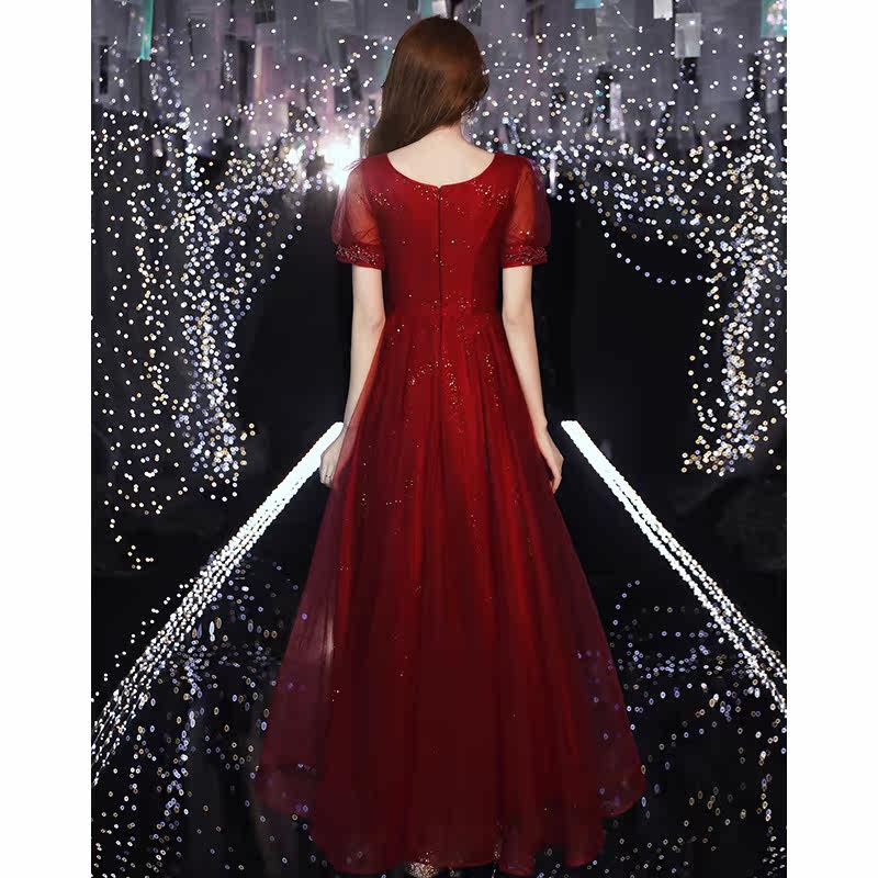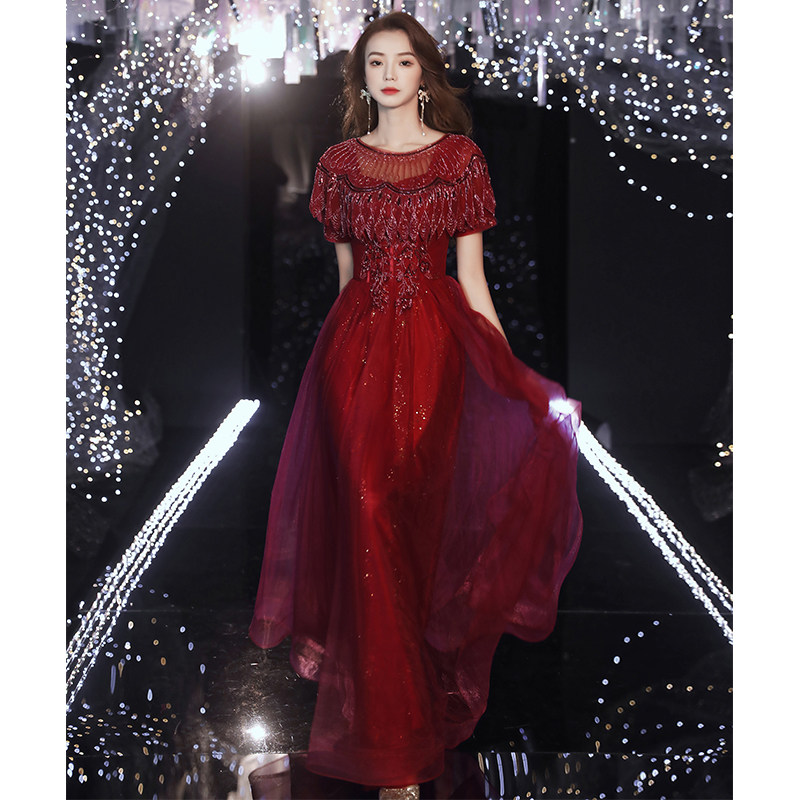 Bride toast 2021 new winter wine red simple atmosphere high-end temperament wedding back dress dress women