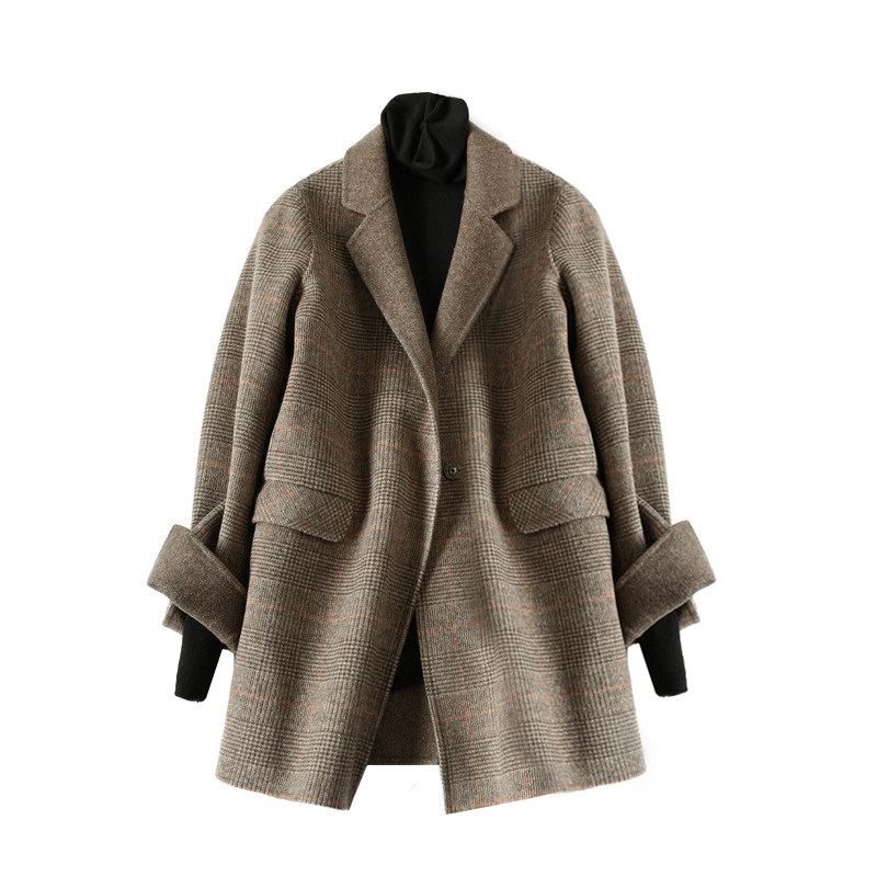 Maje moscoloni double-sided cashmere wool coat women's Korean version loose autumn new plaid suit jacket