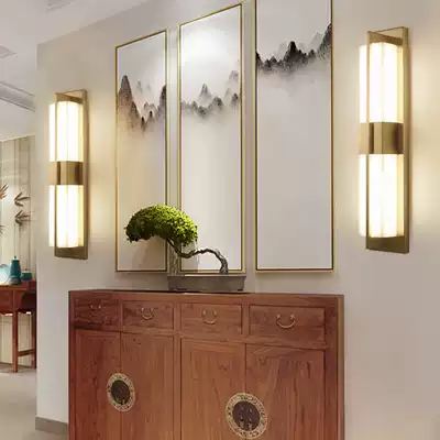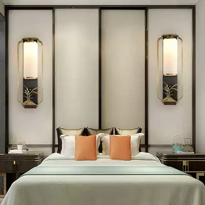 All-copper new Chinese wall lamp Bedroom bed head lamp Chinese style living room background wall creative marble corridor aisle wall lamp