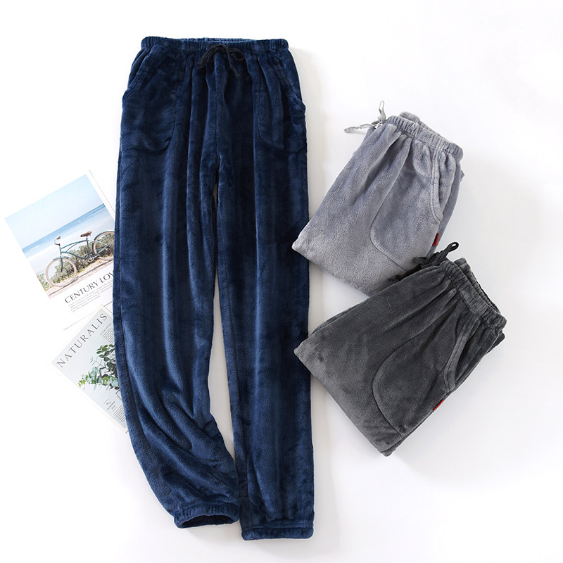 Autumn Winter Flannel Trousers Thickened Warm Coral Suede Sleeping Pants Women Couples Home Pants Closed Bunches Pants Men