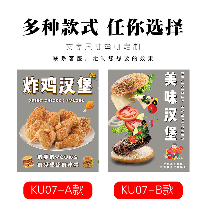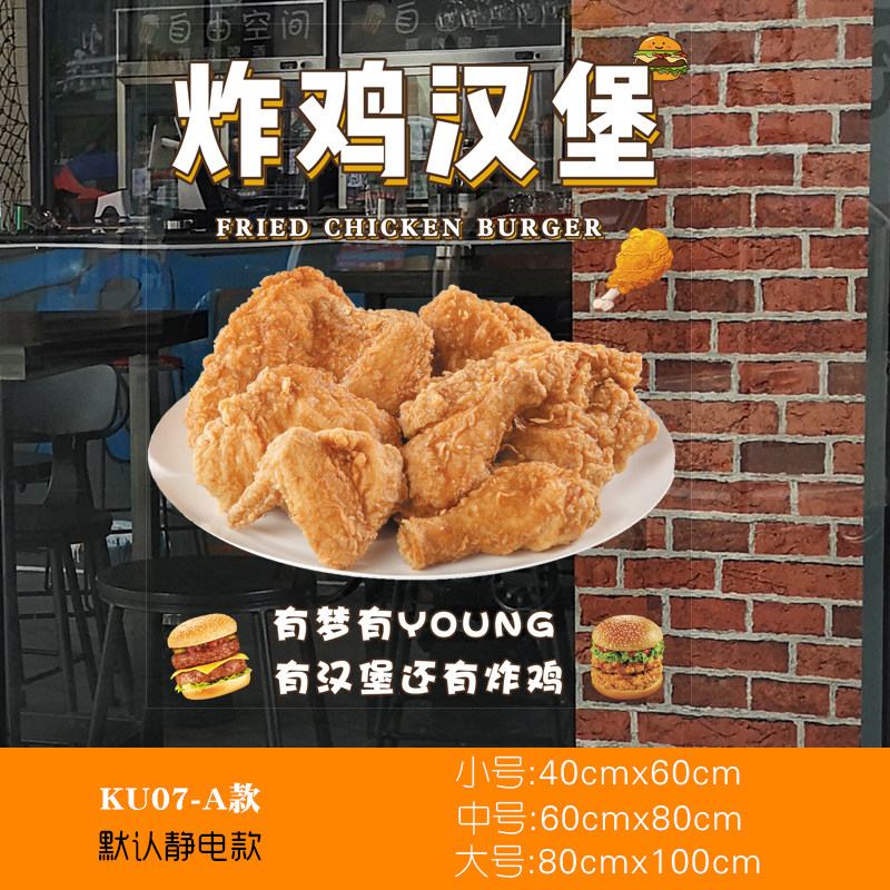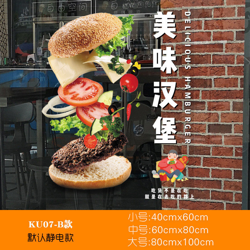 Personalized burger shop glass stickers milk tea fried chicken fast food restaurant window sliding glass door decoration poster wall stickers