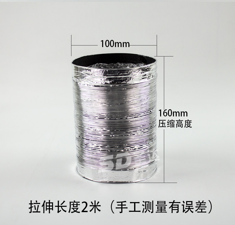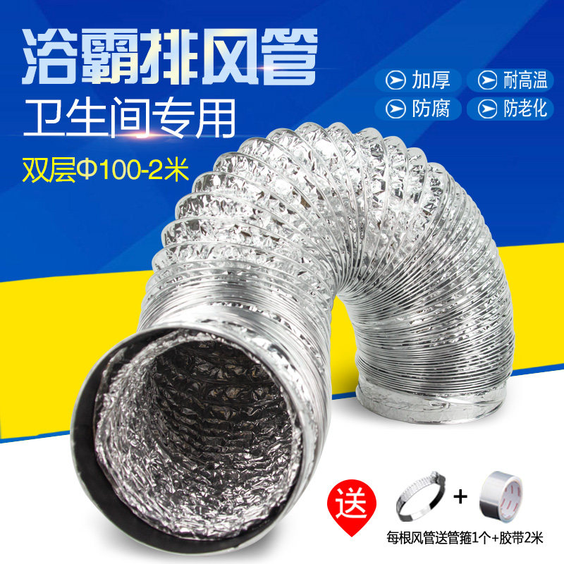 Double-layer exhaust aluminum foil air duct makeup room pipe 100 ventilation hose 2 meters exhaust Yuba ventilation smoke pipe lengthened