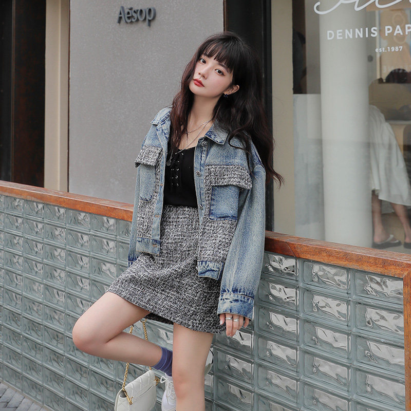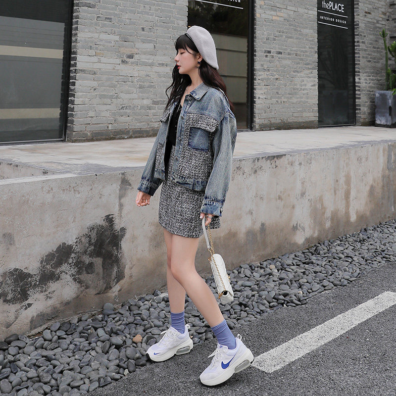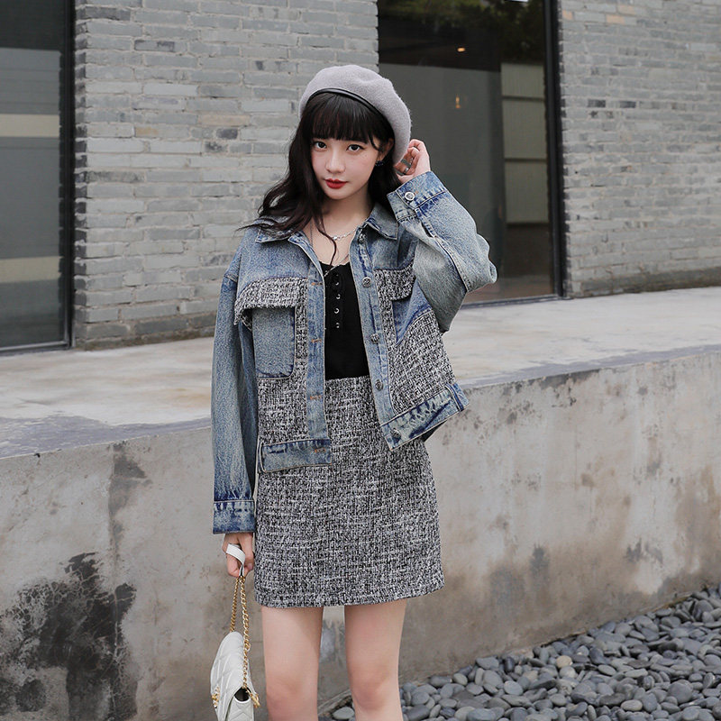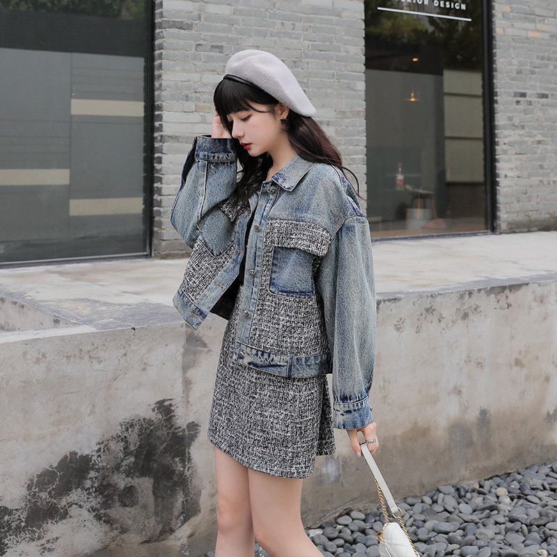 Small Fragrant Wind Suit Woman 2022 New name Yuanyuan Fashion Minus age Coarse Flowers, Cowboy Dress Early Spring Two Sets