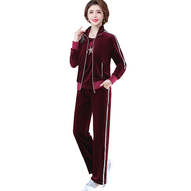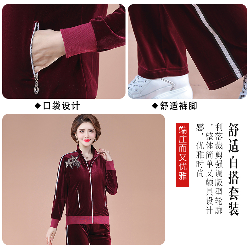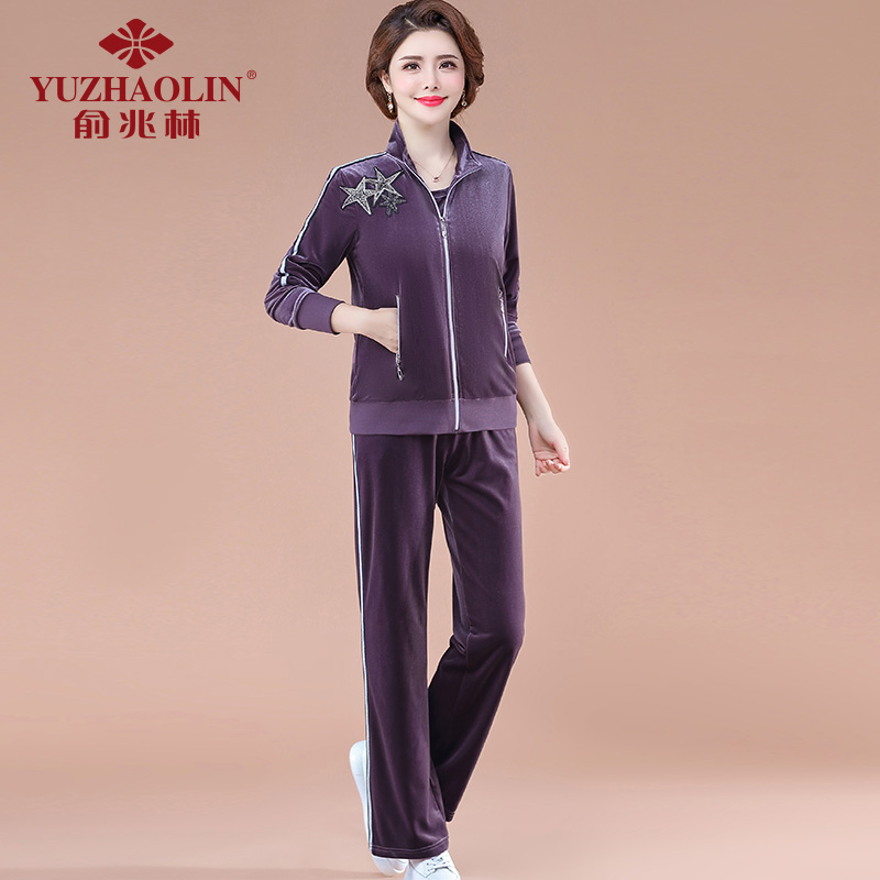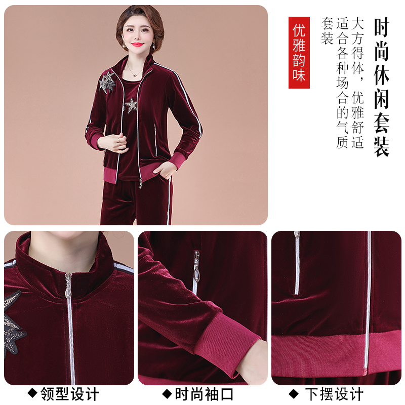 Middle-aged sports suit women's spring and autumn age fashion three sets blouses 40-year-old 50 middle-aged moms autumn clothes jacket