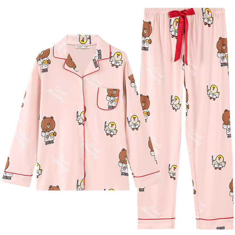 Fenttem Brown Bear Spring and Autumn Couple Nightclothes Cute Cartoon Long Sleeper Couple Couple Couple Couple