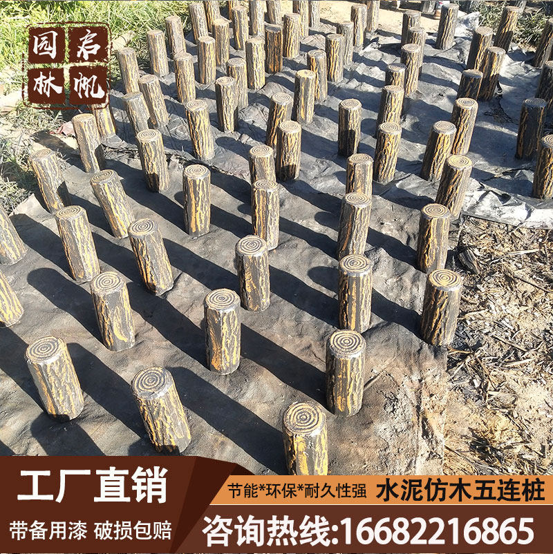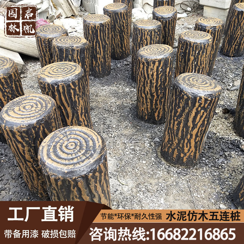 Cement imitation wooden stake imitation wood grain along the stone garden lawn retaining pile imitation tree stump five consecutive pile single single custom