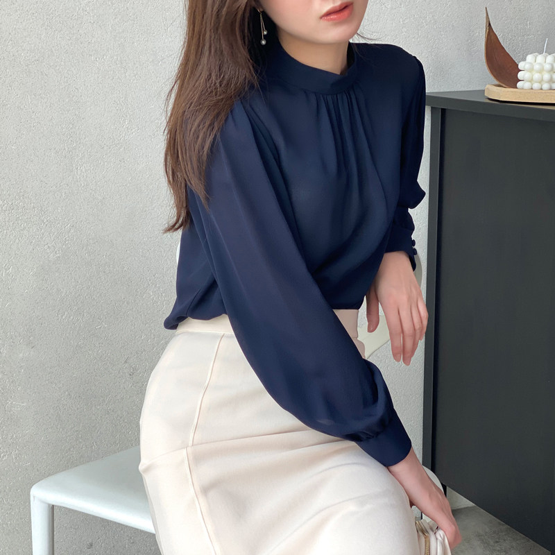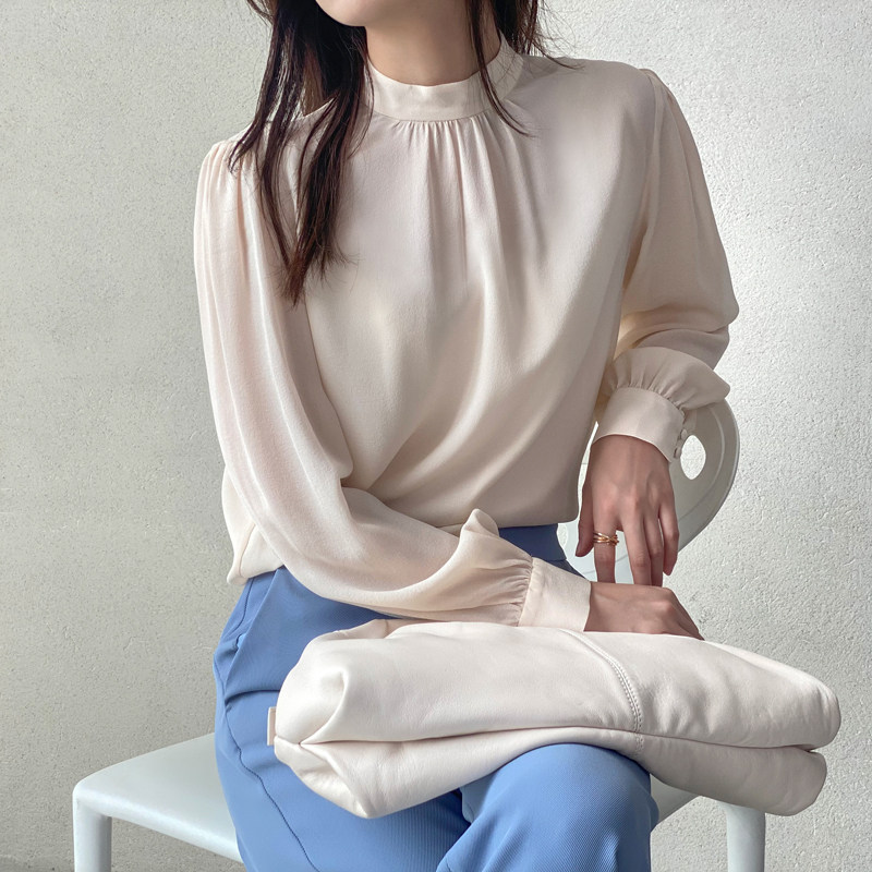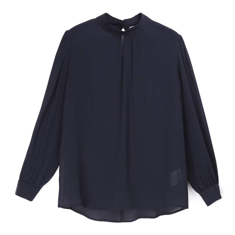 Ma's Jiamin Early Autumn New Genuine Silk Jianhong Crepe Half High Collar Long Sleeve Shirt Lady Blouse 2 Color Entrance