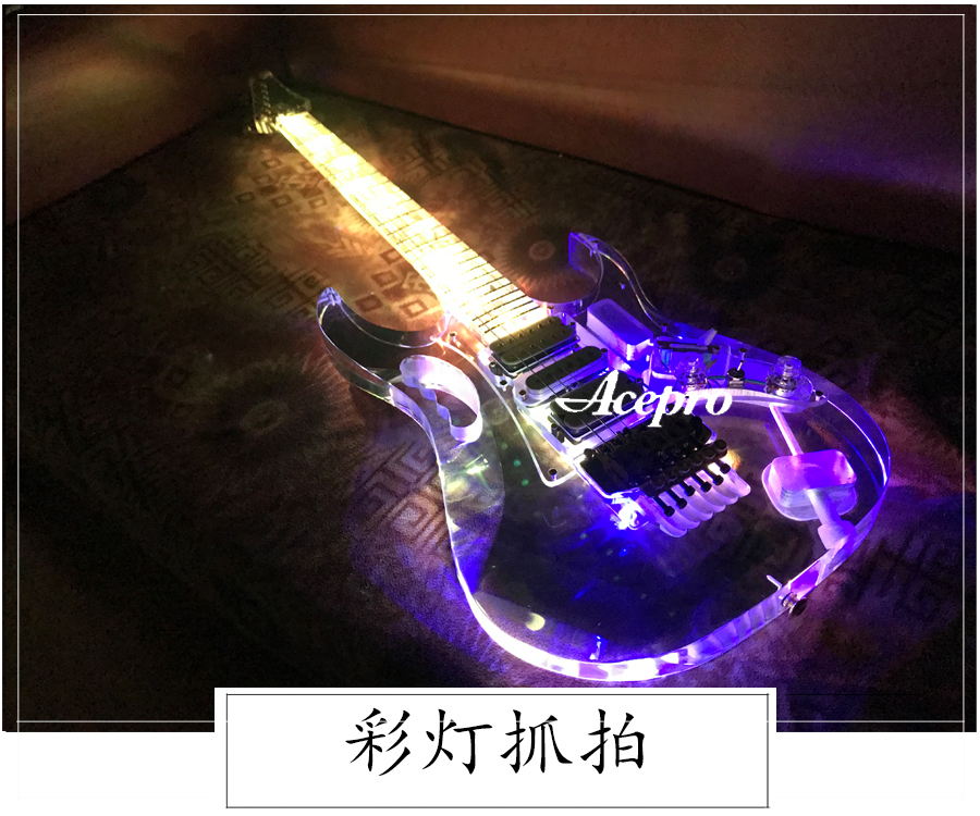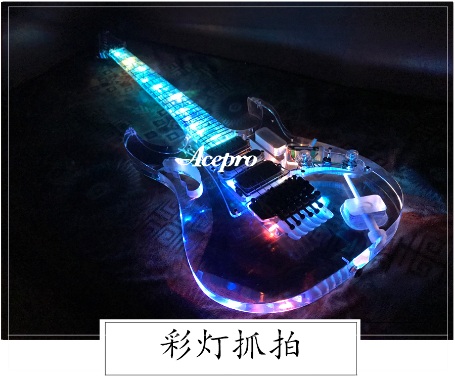 Beginner entry-level professional stage transparent full crystal electric guitar cool color LED light luminous double shake guitar