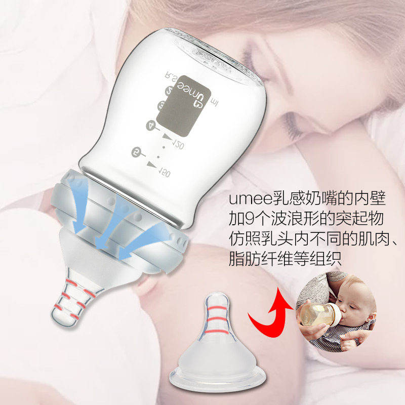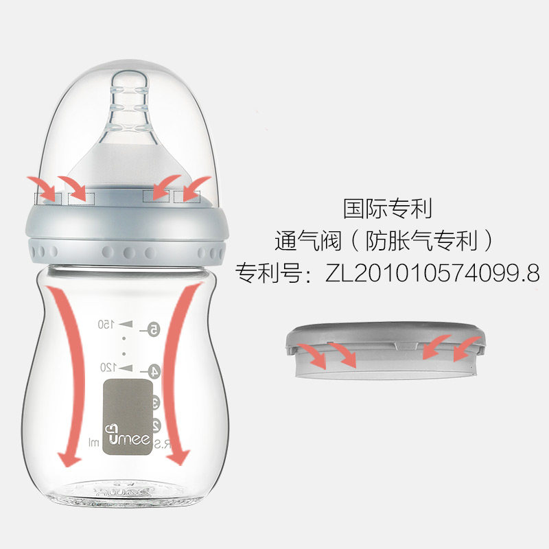 Holland umee neonatal anti-flatulence glass bottle Wide mouth diameter high borosilicate baby preterm baby anti-choking bottle