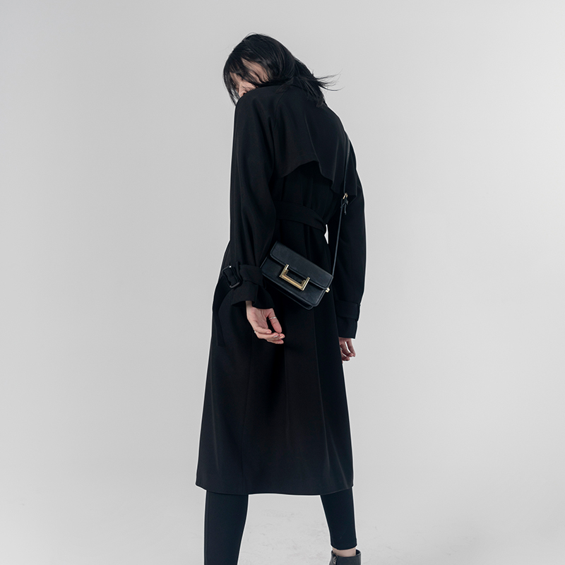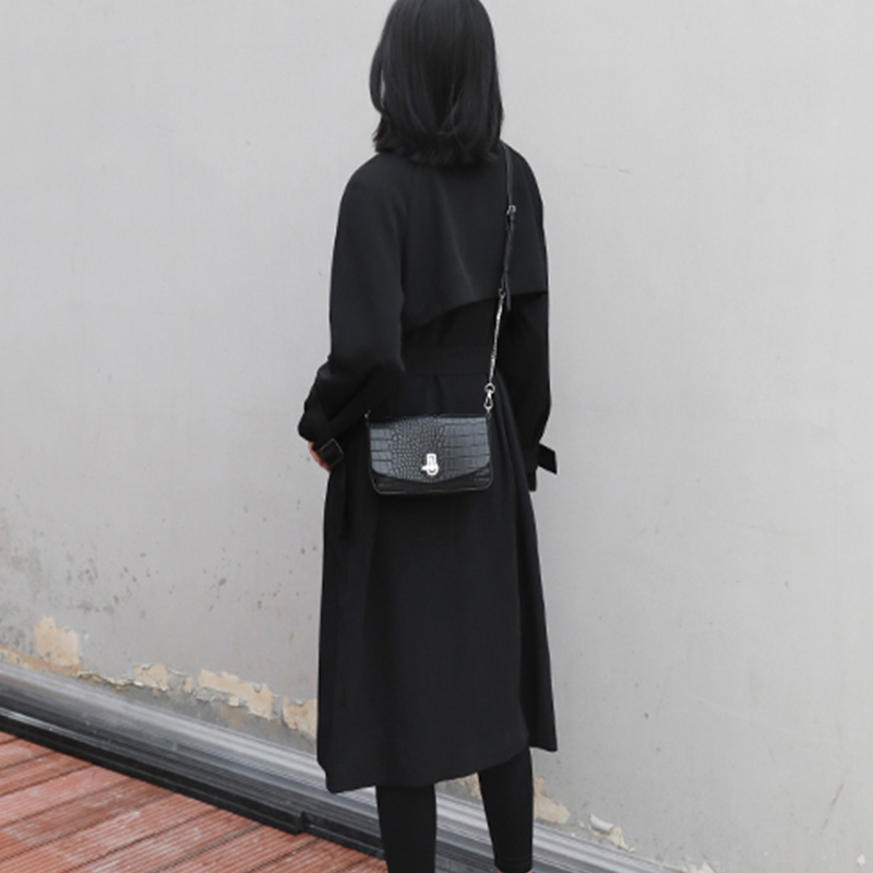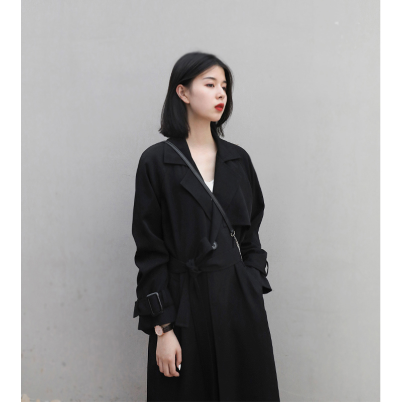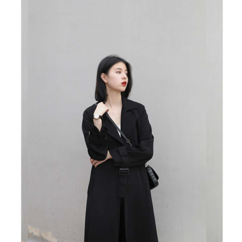Yinding loose Korean style temperament popular British style drapey black windbreaker mid-length women's autumn coat