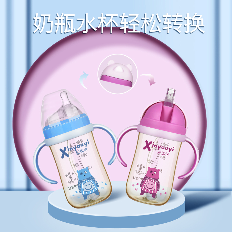 New Youyi milk bottle ppsu resistant to fall material water cup dual-use one year old and large baby capacity straw cup 300ml