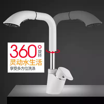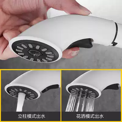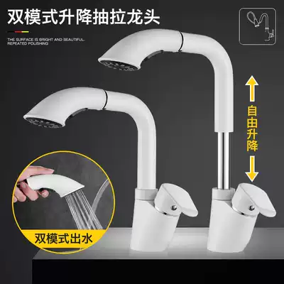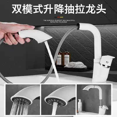 Full copper drawing basin faucet hot and cold washbasin single hole shampoo lifting telescopic shower White Nordic