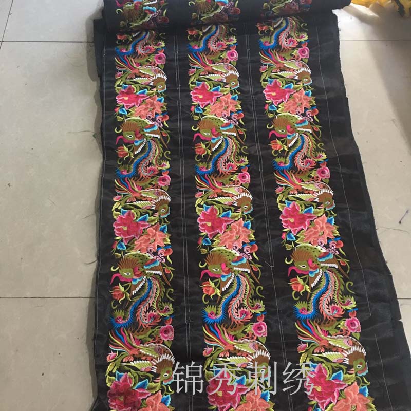 Ethnic machine embroidery features Miao handicraft embroidery belt large lace embroidery pieces