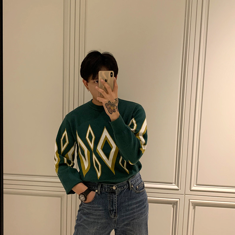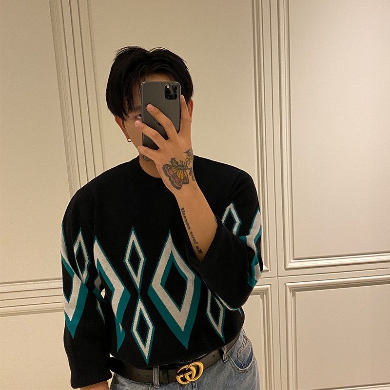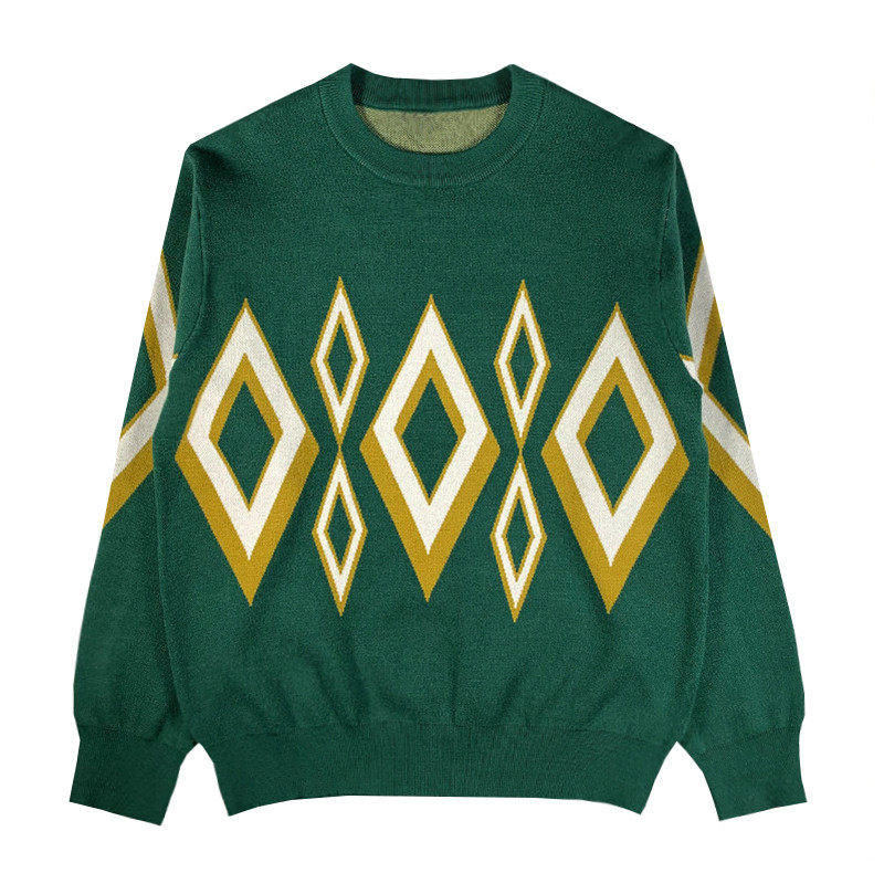 BROTHER autumn and winter men's round neck fashion knitwear European and American retro diamond jacquard personality trend sweater men