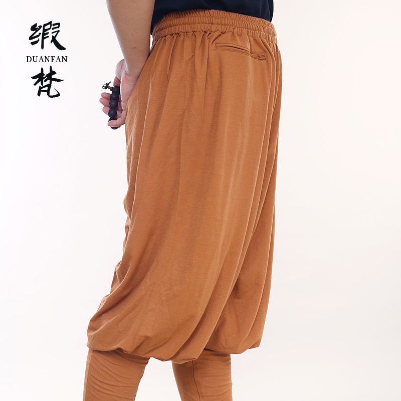 Satin Sanskrit monk in spring free of tying legs, monk pants portable, monk's suit Rohan pants casual pants