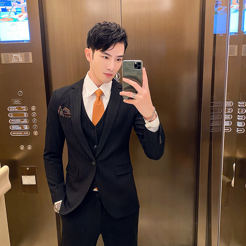 Strip suit suit men three pieces of casual skull handsome suit Han edition of the groom handsome wedding dress tide