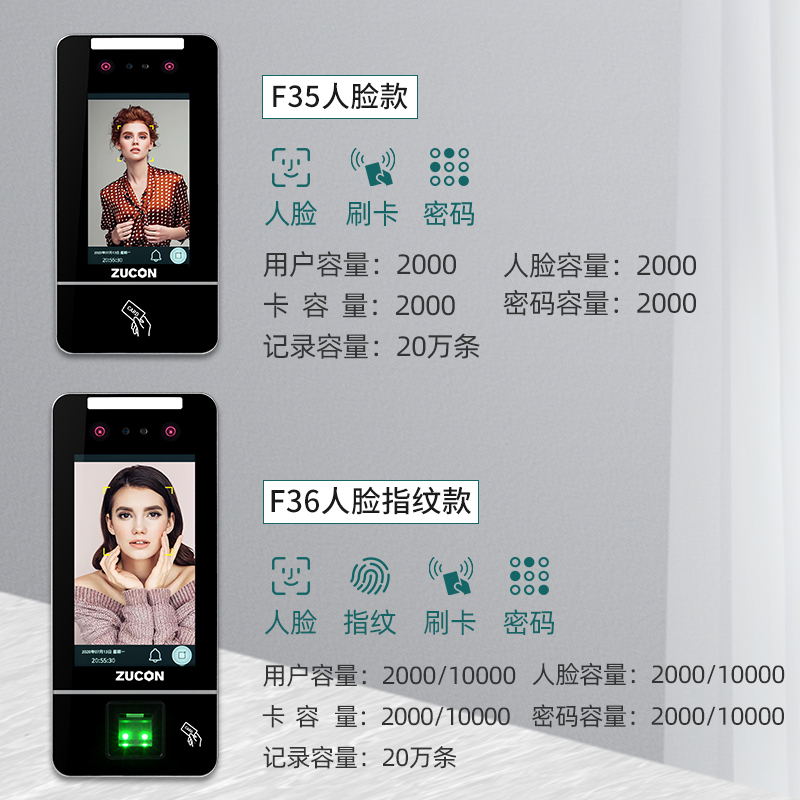 F35 (Dynamic face ID card 2000 users) F36 (dynamic face fingerprint IC card 2000 users) F36plus (dynamic face fingerprint