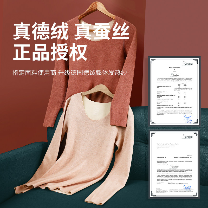 Silk Dush Cashless Self-heating Heating Clothes Autumn Clothes Sanitary Pants Woman Plus Suede Thickened Suit All Cotton Fever