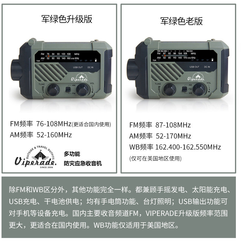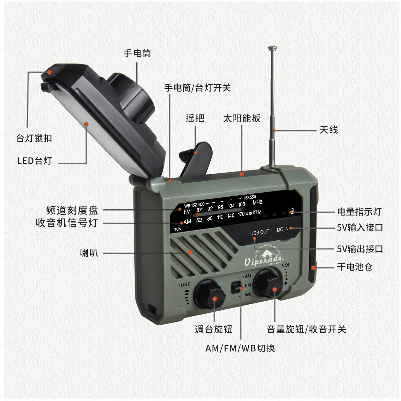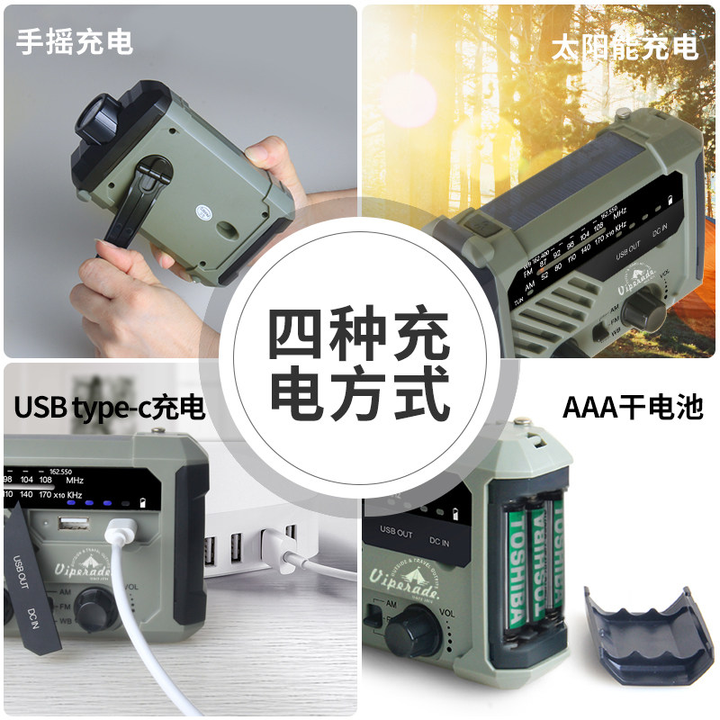 Outdoor Hand Power Generation Emergency Disaster Prevention Multifunction Flashlight Radio Solar USB Charging Combat Readiness Reserve