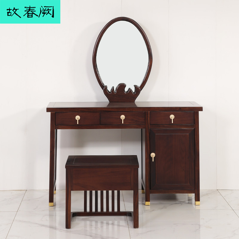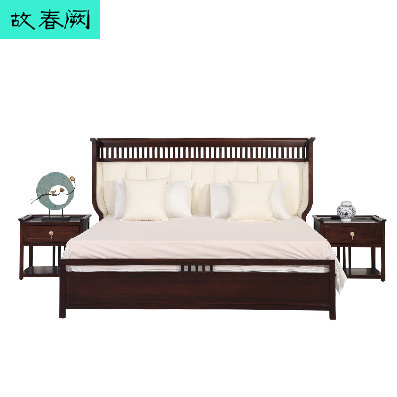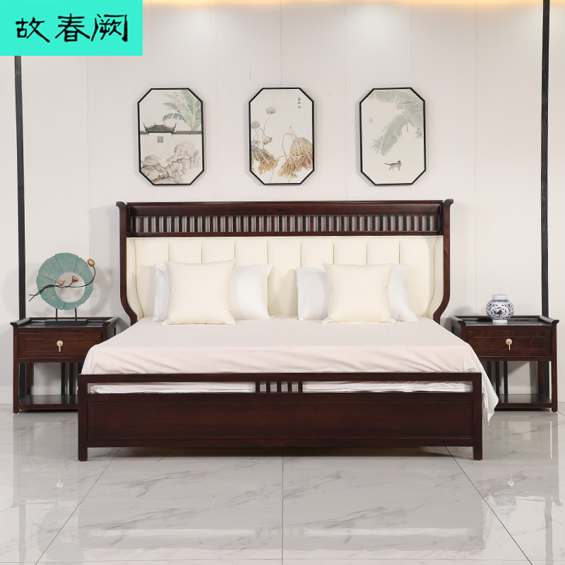 New Chinese Ukim Wood Solid Wood Bed Double Man Bed Makeup Desk Bedroom Large Bed Modern Minimalist Home Villa Innate