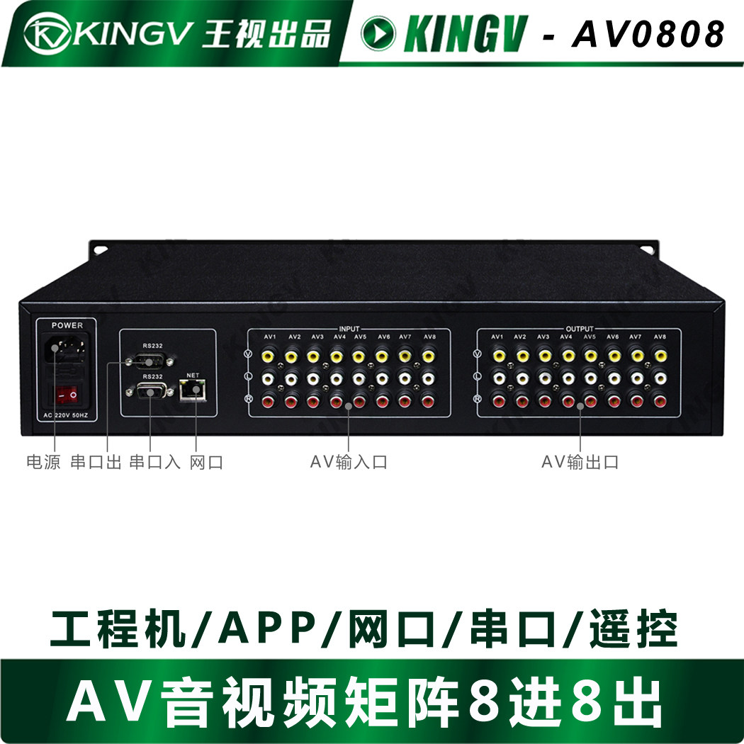 AV audio and video matrix 8 out of Lotus head dual channel stereo simulation switch video conference Wang sight