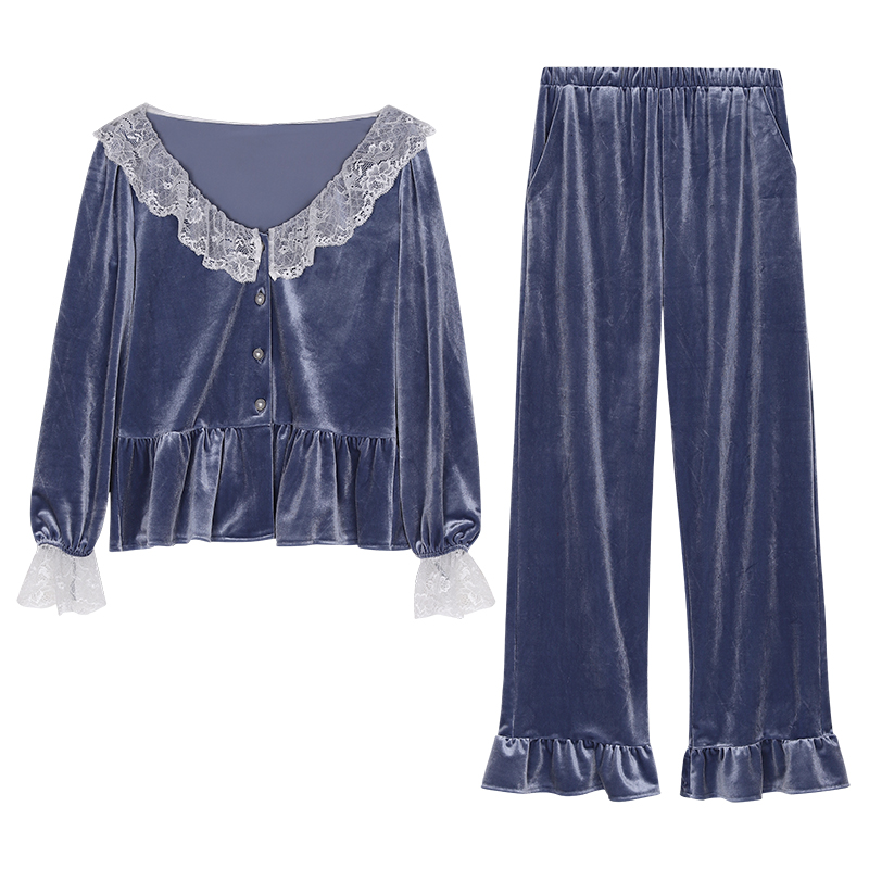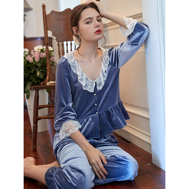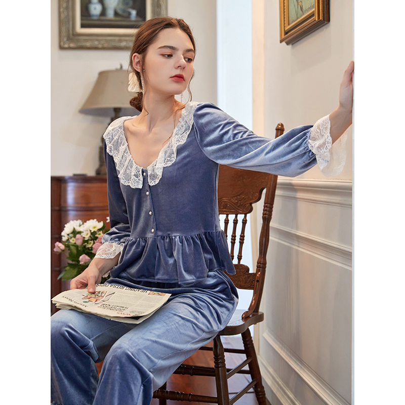 For example, Largen Velvet Pajamas Winter 2022 new suit for French Retro Lace - side female home suit