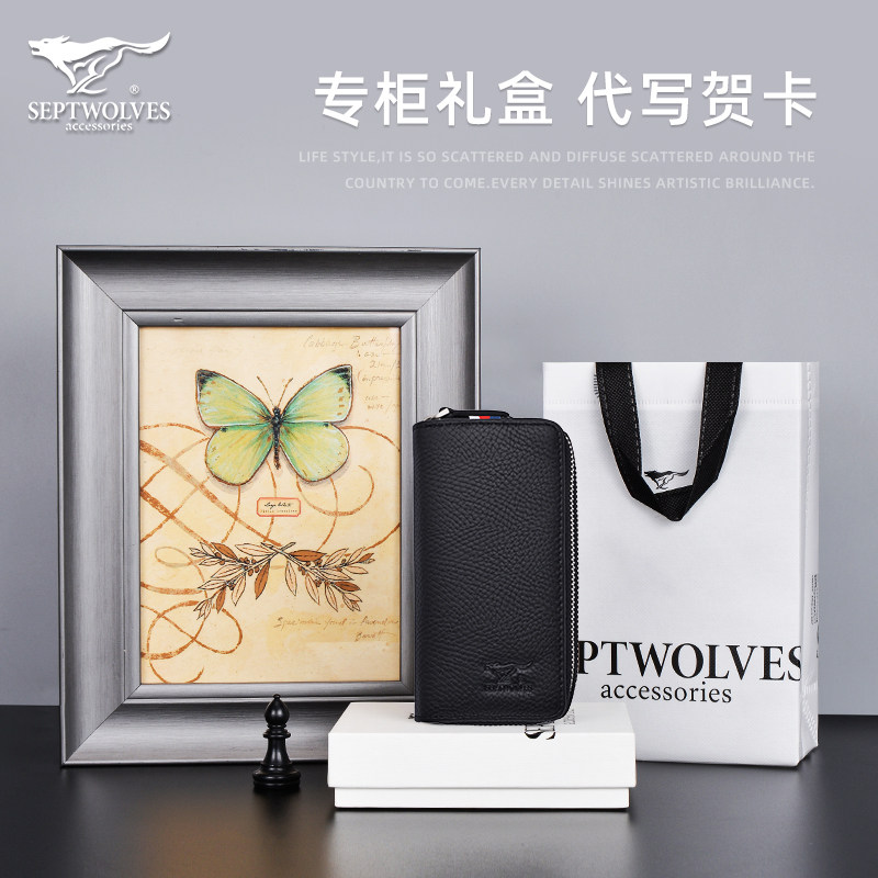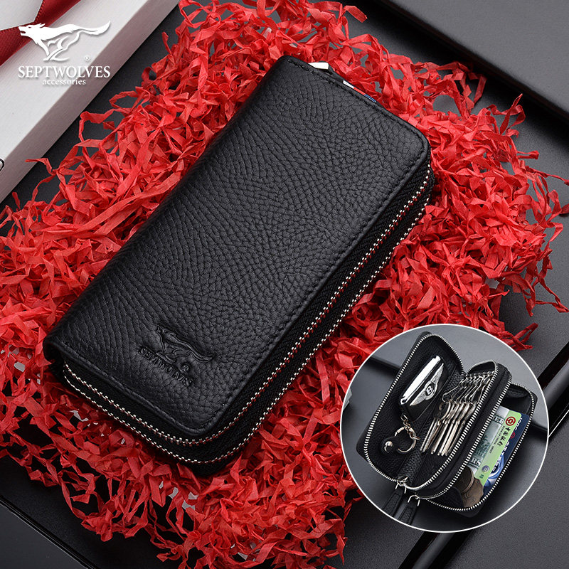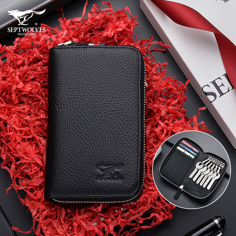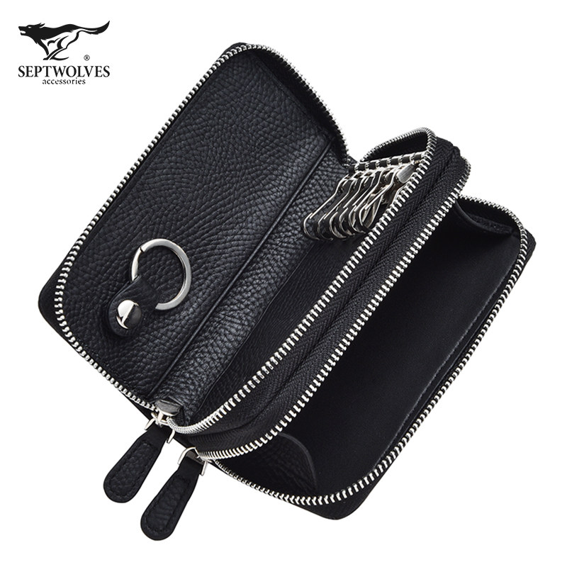Seven Wolves Key Bag Carpack Two-in-one Men Multifunction Bull Leather single double layer Large capacity Laced Bike Lock Spoon Bag