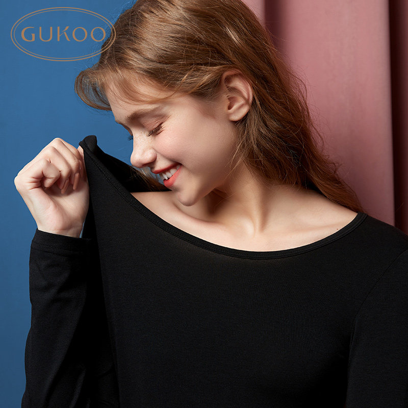 Gukoo fruit shell thermal underwear Men's autumn clothes and pants women's round neck solid color De velvet couple cotton sweater thermal underwear