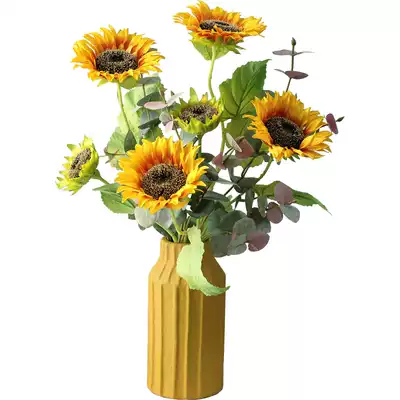 3 sunflowers, 3 branches, 3 sunflowers, 5 branches, 3 sunflowers, single head sunflower, 5 branches, single head sunflower, 4 branches, two flowers, one bud, sunflower, Golden Vase, middle waist, 3 two flowers and one bud