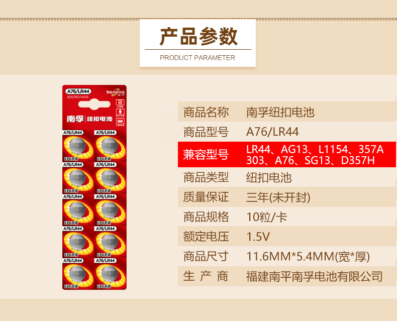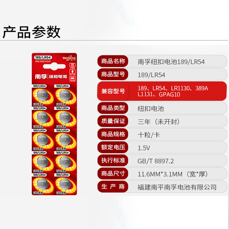 Nanfu AG10 button battery LR1130 LR54 LR41 calculator alkaline thermometer A76 LR44 192