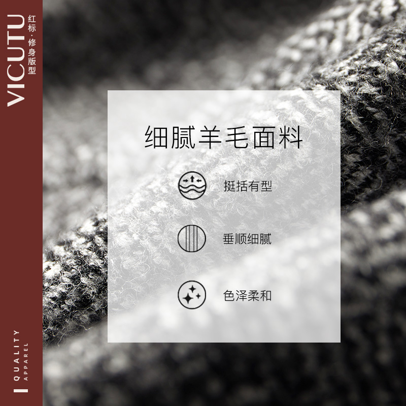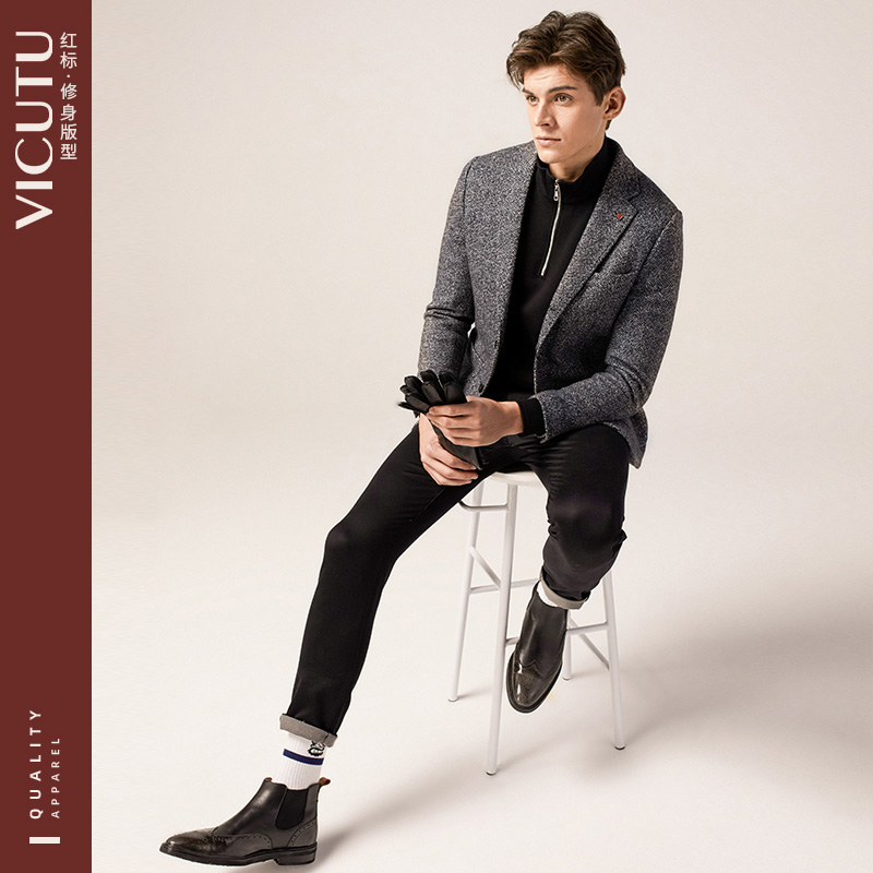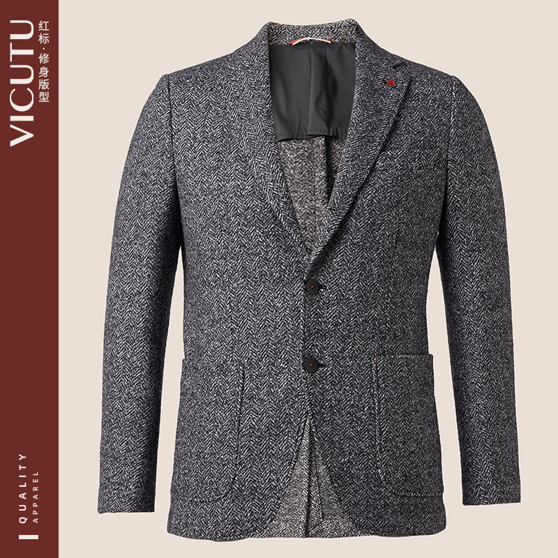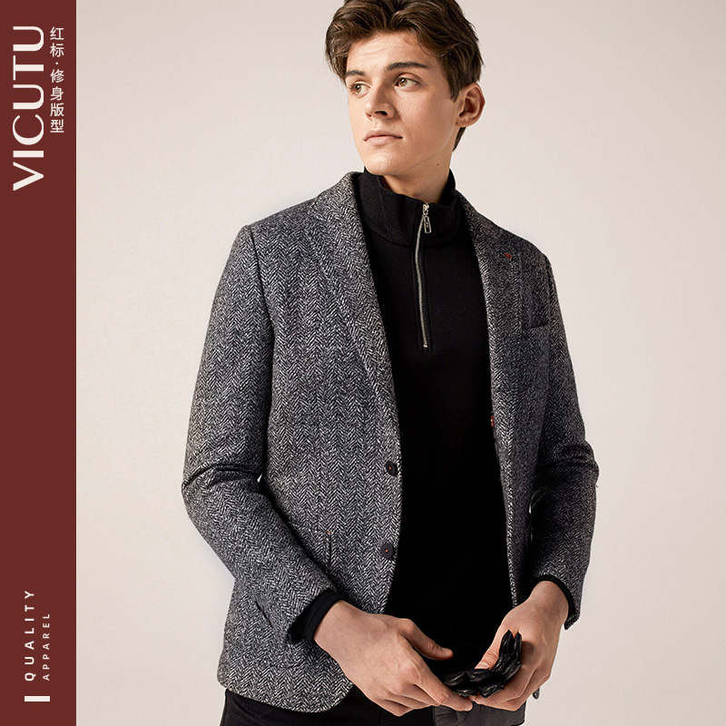VICUTU VICUTU men's single suit wool trend flower gray slim business casual suit jacket