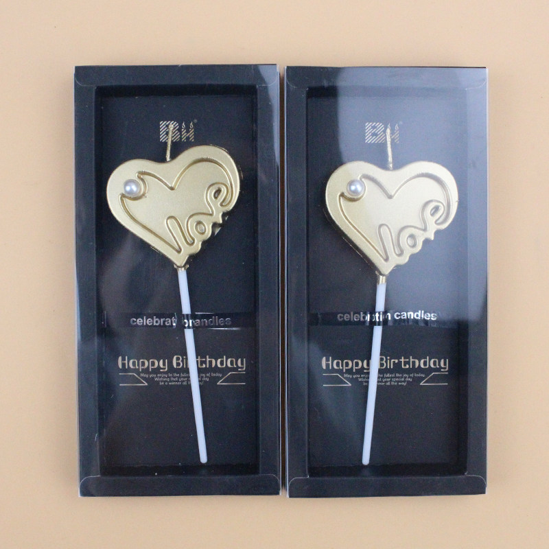 New Valentine's Day candle heart-shaped golden LOVE birthday cake candle gift party love decoration candle
