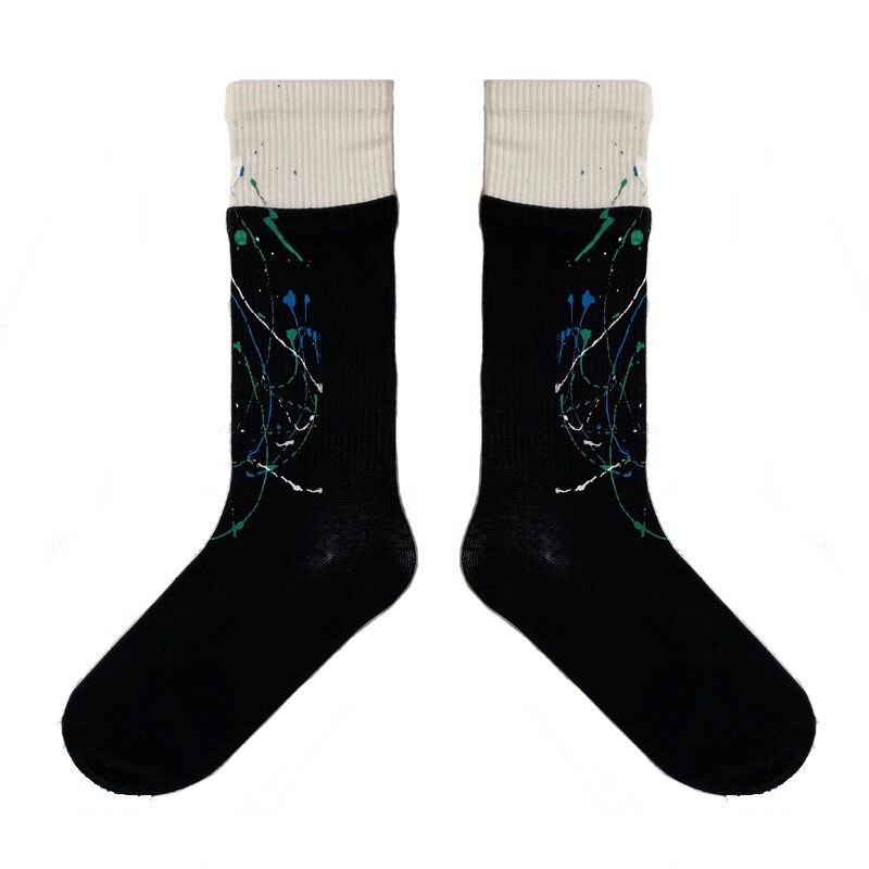 Nick Socks splashed ink fake two-piece double socks in the mouth tube socks ins tide all-match sports socks women's breathable thin section
