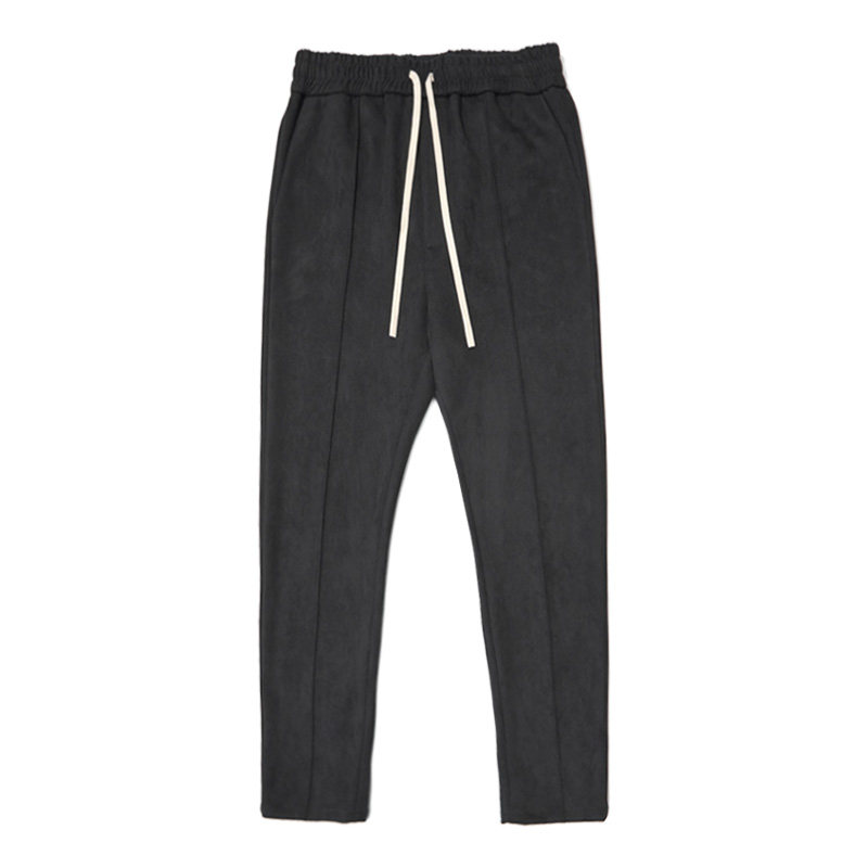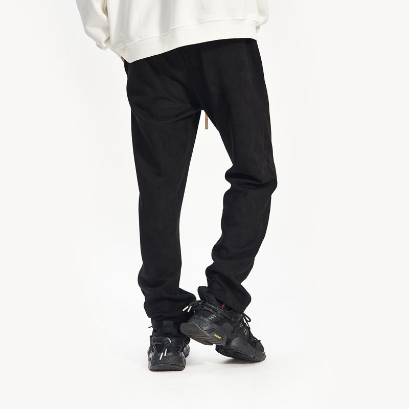 BTW pants men's spring autumn loose 100 hitch high street hip hop long pants down to fit black straight drum suede casual pants