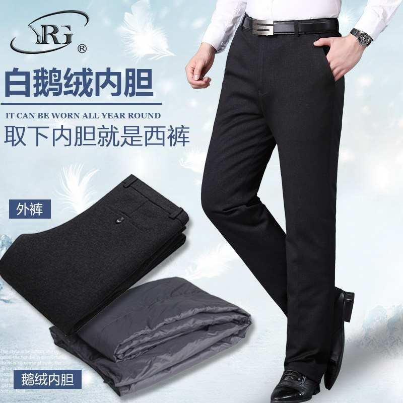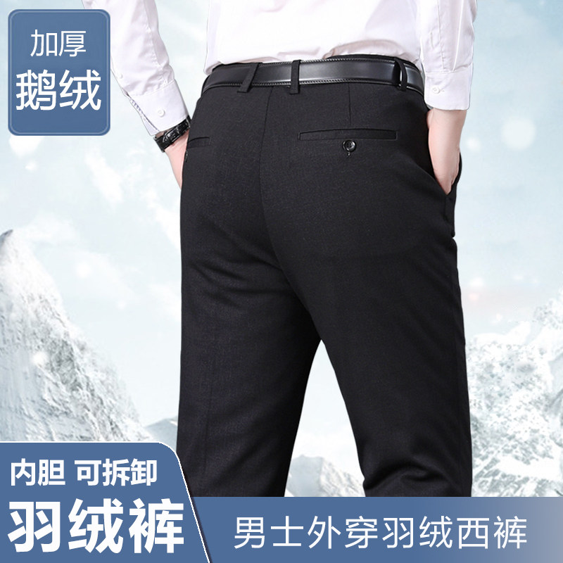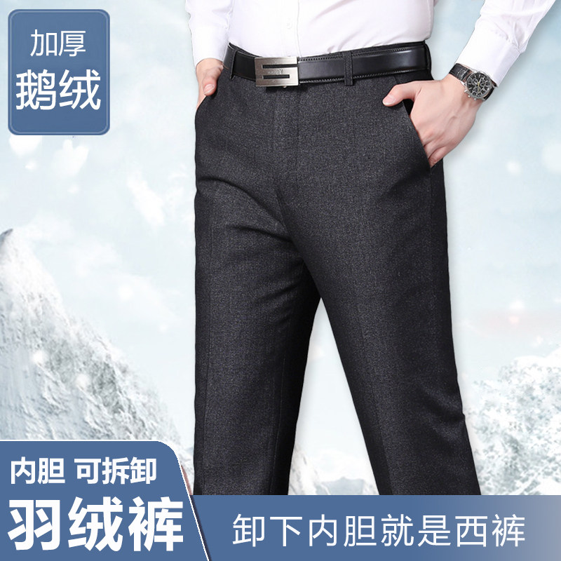 Down Pants Men Outwear Middle Aged Anti-Chill Warm Liner Thickened White Goose Down Pants Fashion Casual Cotton Pants High Waist-Taobao