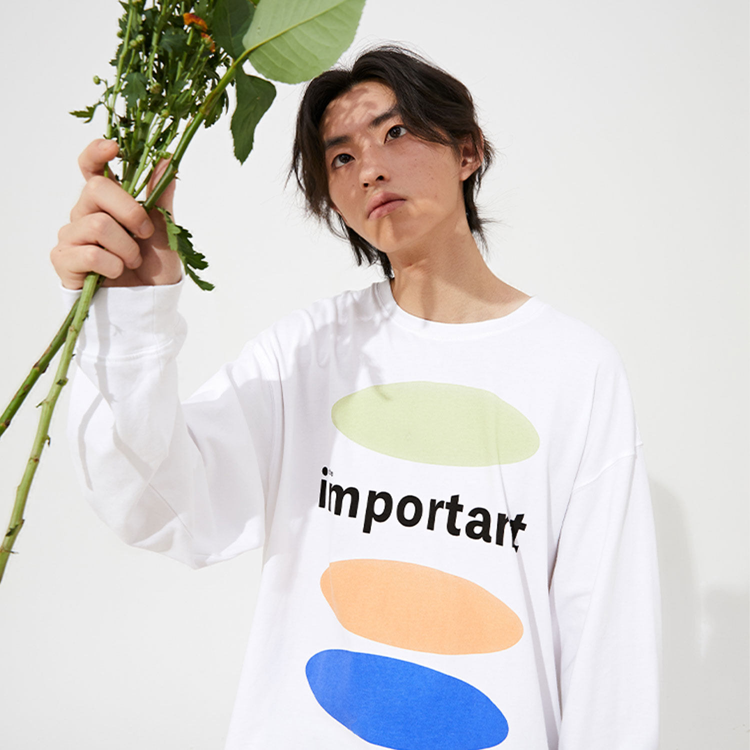 HUGALLGUILT autumn and winter three-color circle print round neck cotton long-sleeved loose couple's national tide T-shirt