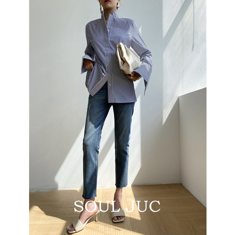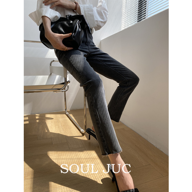 SOUL JUC Jeans Women's High Waist Slim Fit Thin Foot Ninth Pants Straight Light Color