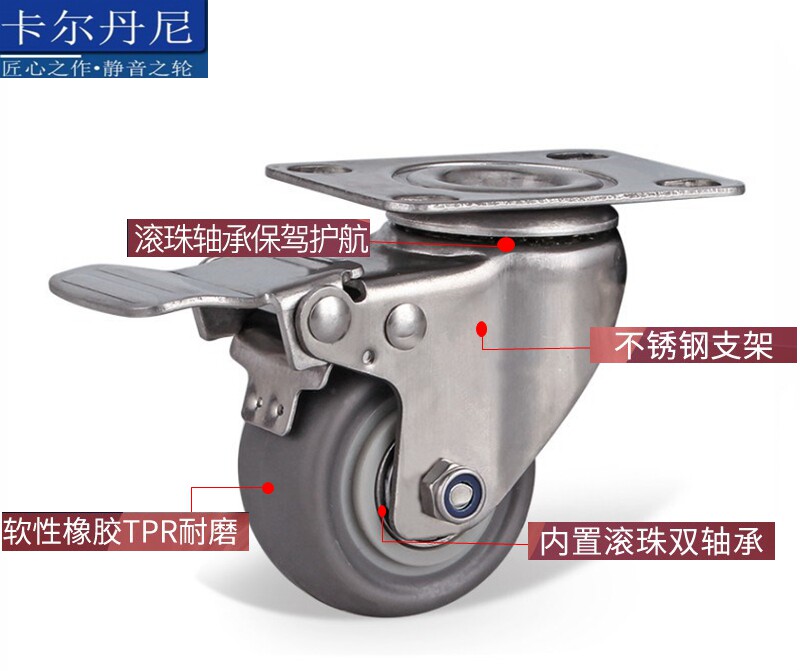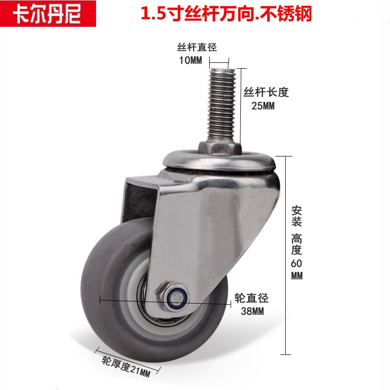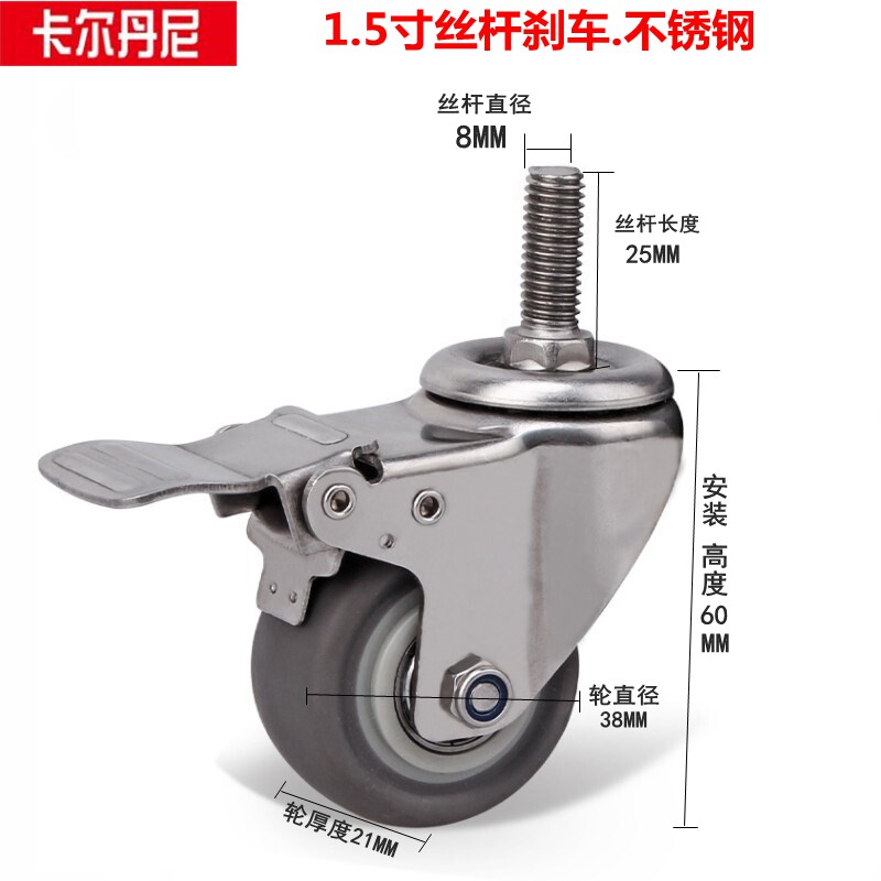 Caldani stainless steel caster wheel universal wheel screw universal wheel rubber industrial wheel furniture wheel 1 5 inch 2 inch