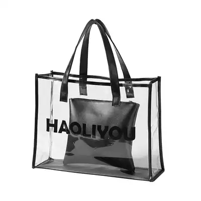 Dry and wet separation large capacity tote bag daughter bag female waterproof transparent pvc jelly bag short trip shoulder bag