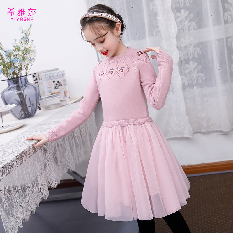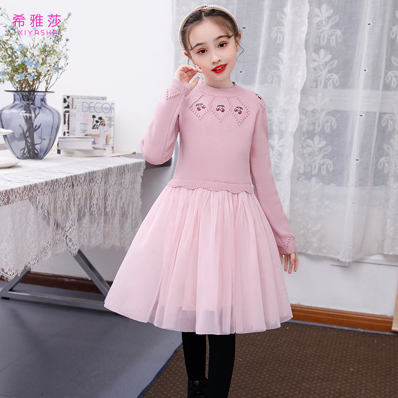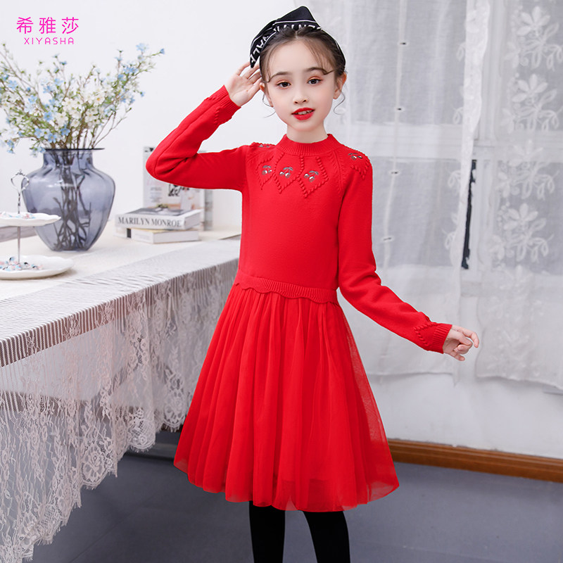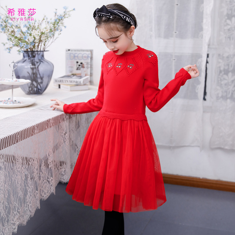 Girls Autumn and Winter Dress Girls Sweater Skirt New Red Base Dress New Year's Dress Western Children's Princess Dress