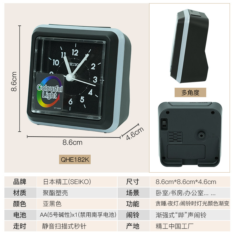 SEIKO Japanese Seiko bedroom night light sleepy night light mute fashion simple crescendo sound student with small alarm clock