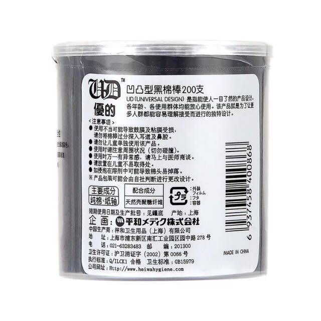 Watsons UD excellent concave and convex black cotton swabs 200 * 2 boxes spiral paper shaft cotton swab cotton swab double-headed