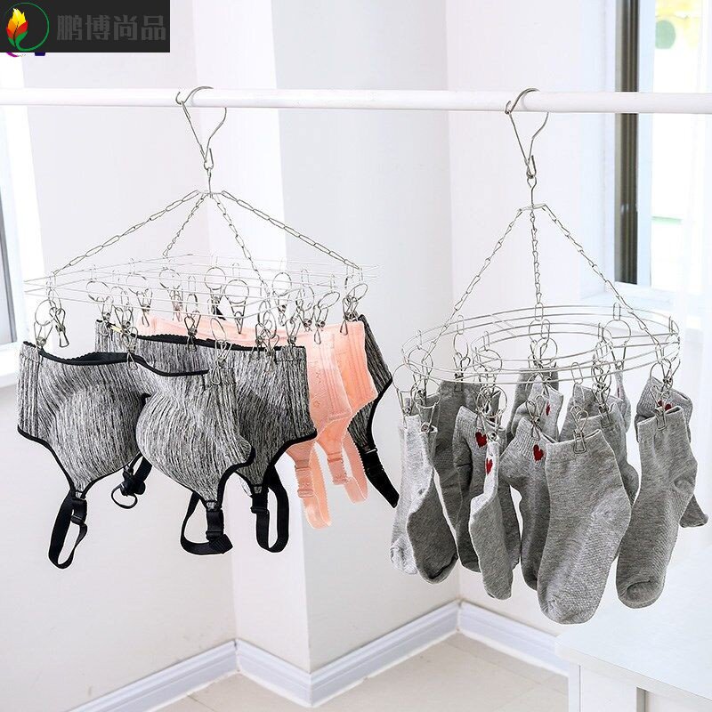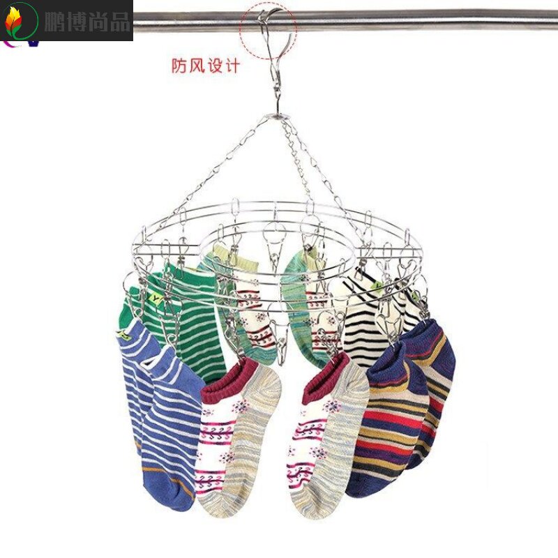 Stainless steel multi-function clothes tray drying underwear rack socks artifact household clip cool clothes clip socks round hook
