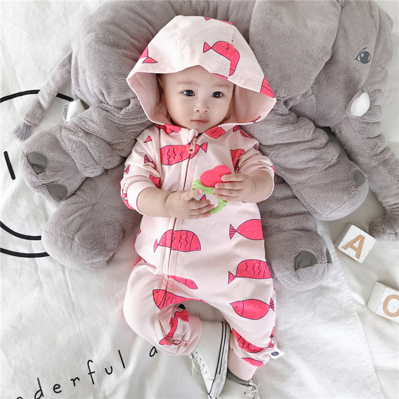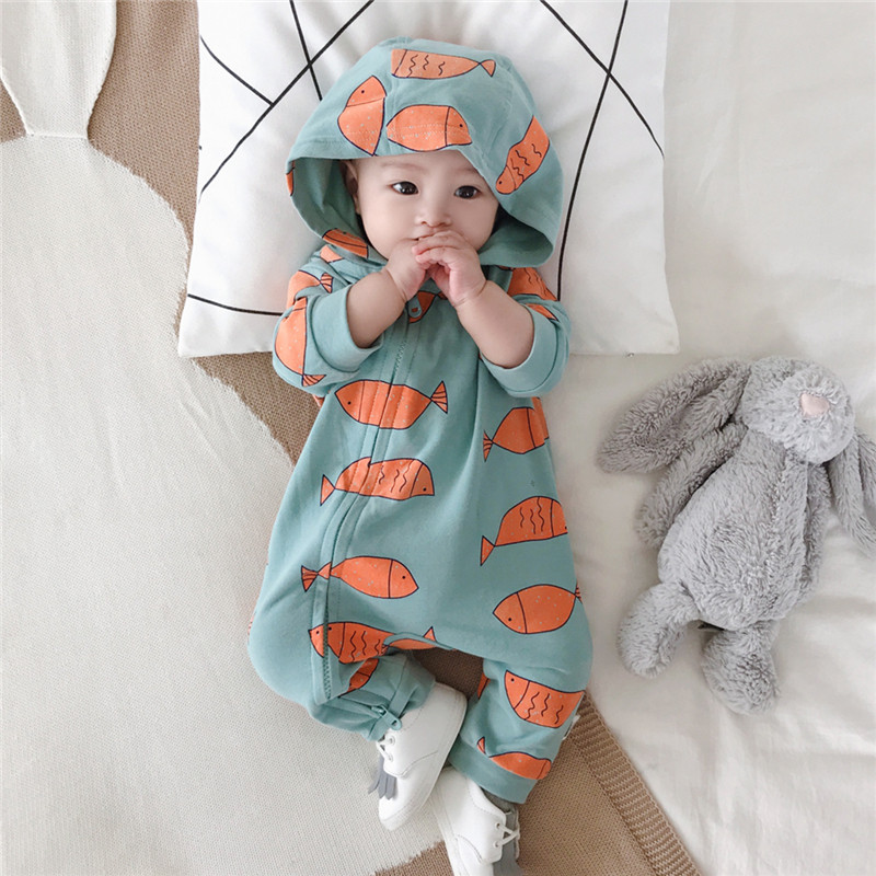 British next kid baby spring and autumn jumpsuit baby cotton jumpsuit hooded newborn new go out romper