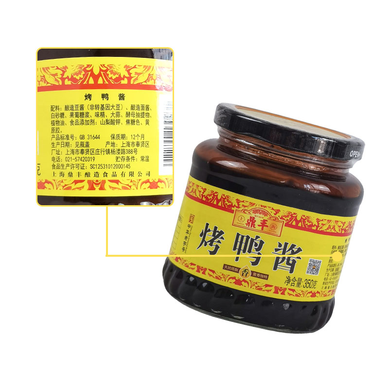Shanghai Dingfeng roast duck sauce 350g bottled sauce duck Beijing roast duck cake skin skin sauce special dipping sauce sweet noodle sauce