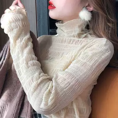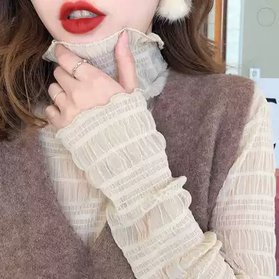 Lace base shirt women's autumn and winter new semi-high collar foreign style inner set long sleeve mesh fairy inside small shirt top